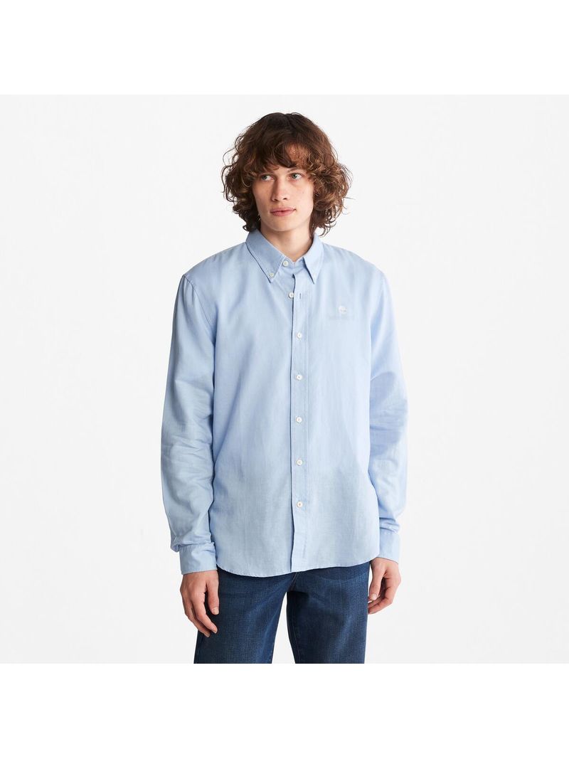 Camisa Timberland Hombre Lovell de Lino y Algodón Celeste