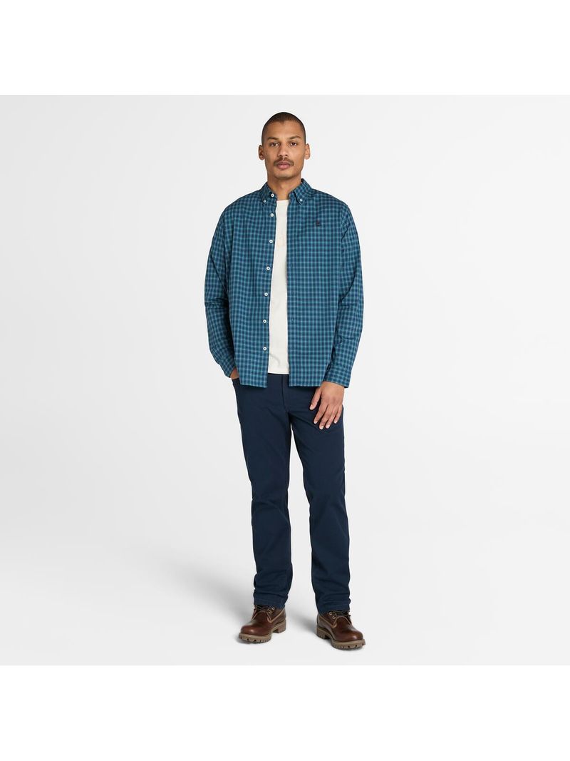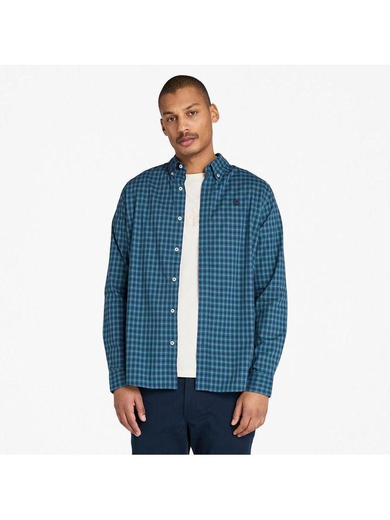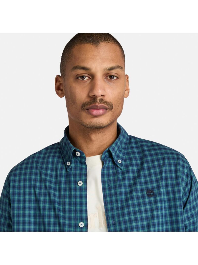 Disfruta de la comodidad con la camisa Stretch Poplin Gingham para hombre. Confeccionada con algodón 100 %, la prenda aporta textura a tu vestuario y te mantiene fresco con el cuello abotonado y el logotipo de Timberland bordado.