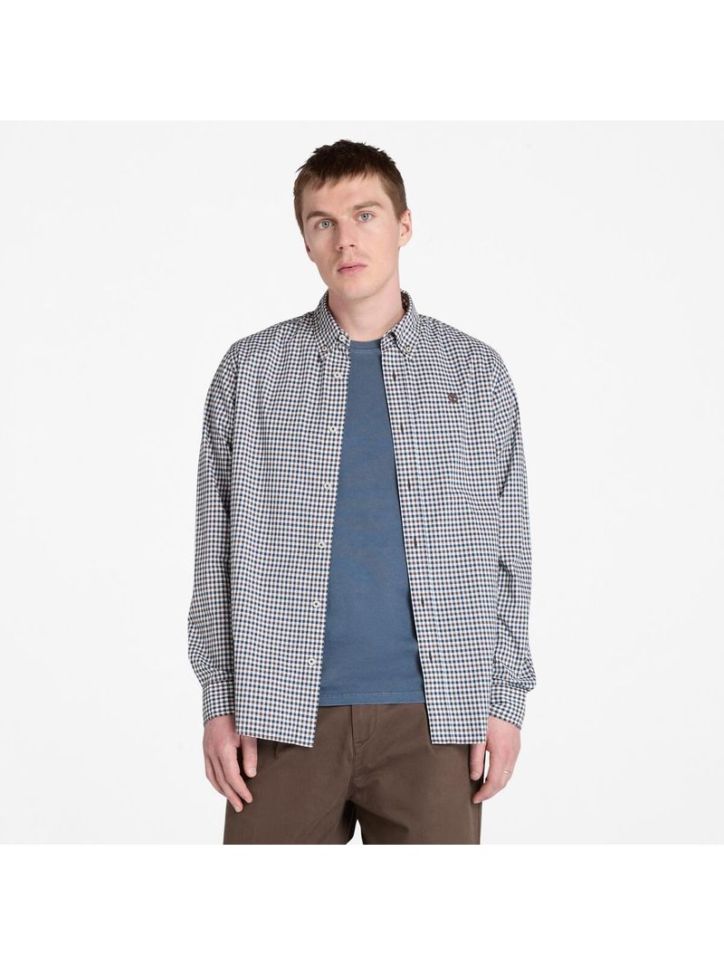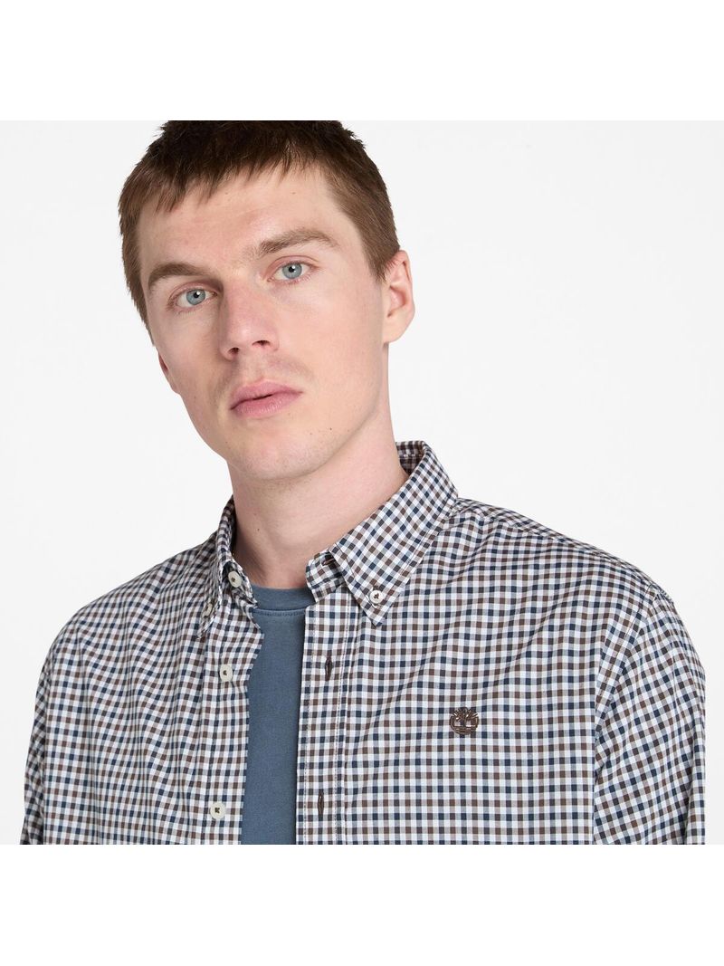 Disfruta de la comodidad con la camisa Stretch Poplin Gingham para hombre. Confeccionada con algodón 100 %, la prenda aporta textura a tu vestuario y te mantiene fresco con el cuello abotonado y el logotipo de Timberland bordado.