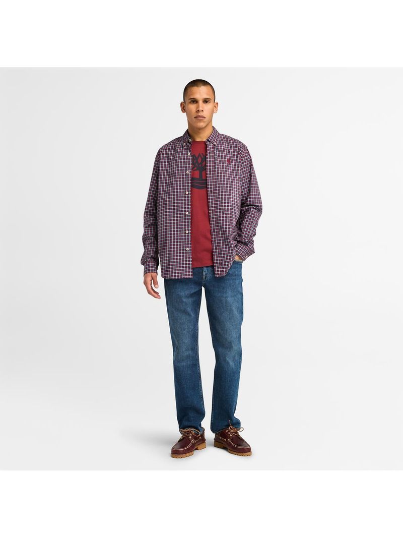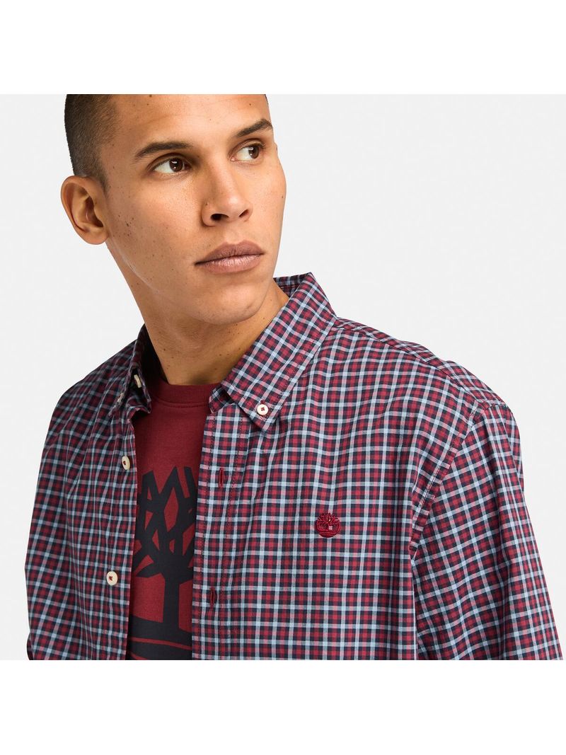 Camisa Timberland Hombre Stretch Poplin Bordó