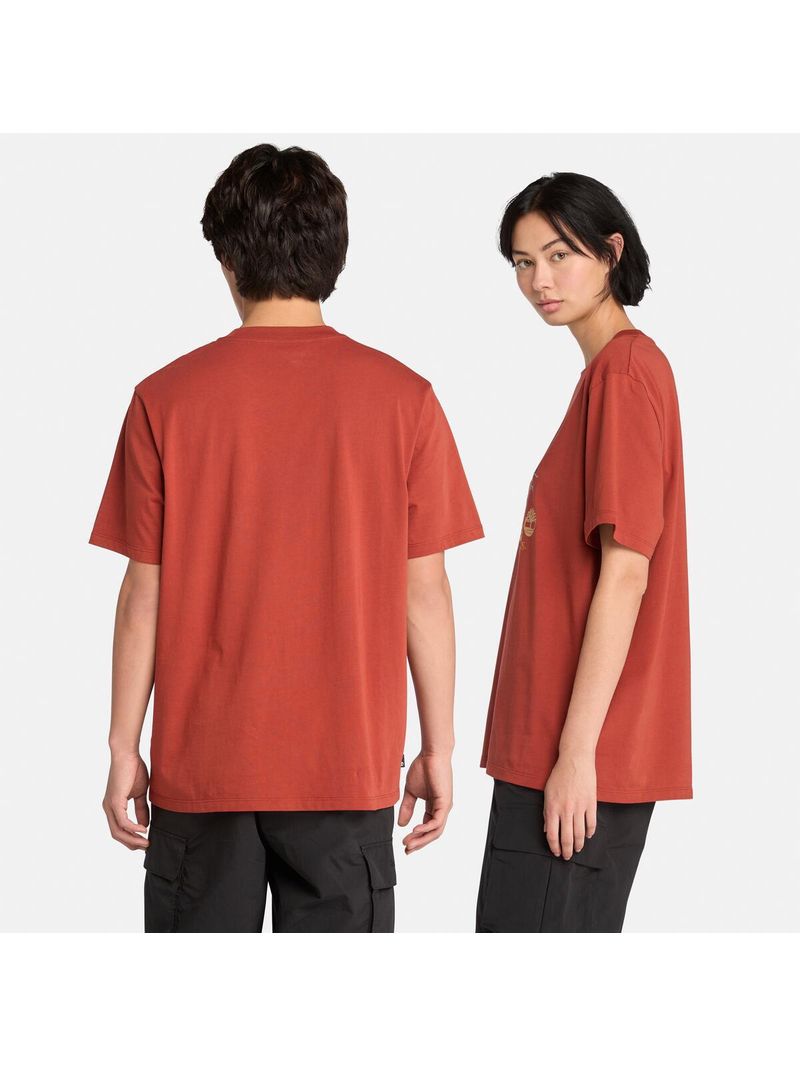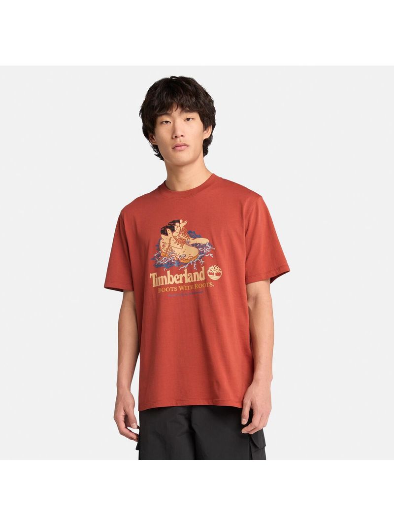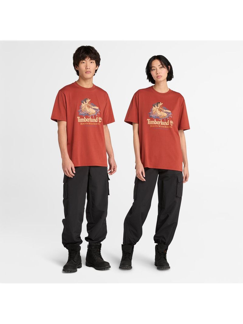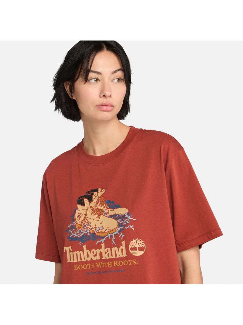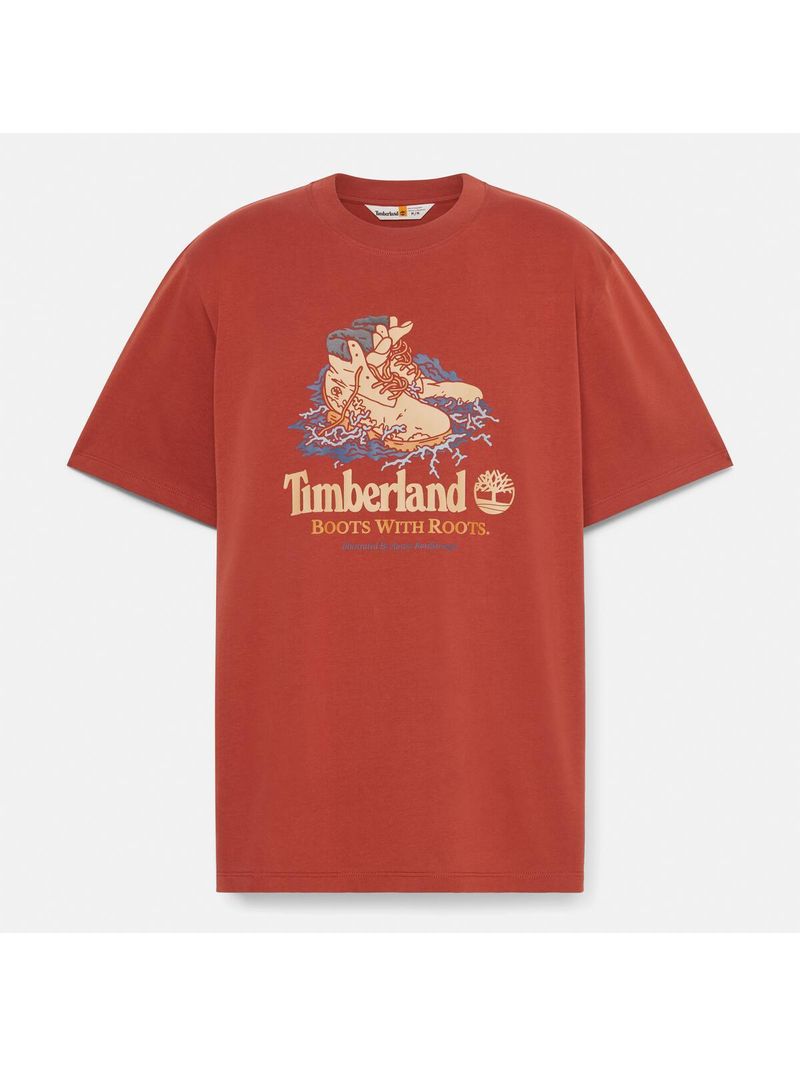 Esta remera de corte auténtico tiene un gráfico de una bota Timberland en la parte delantera y está hecha con algodón 100% de cultivo ecológico